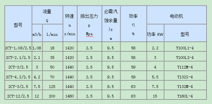 ● 2CY型齿轮泵性能参数